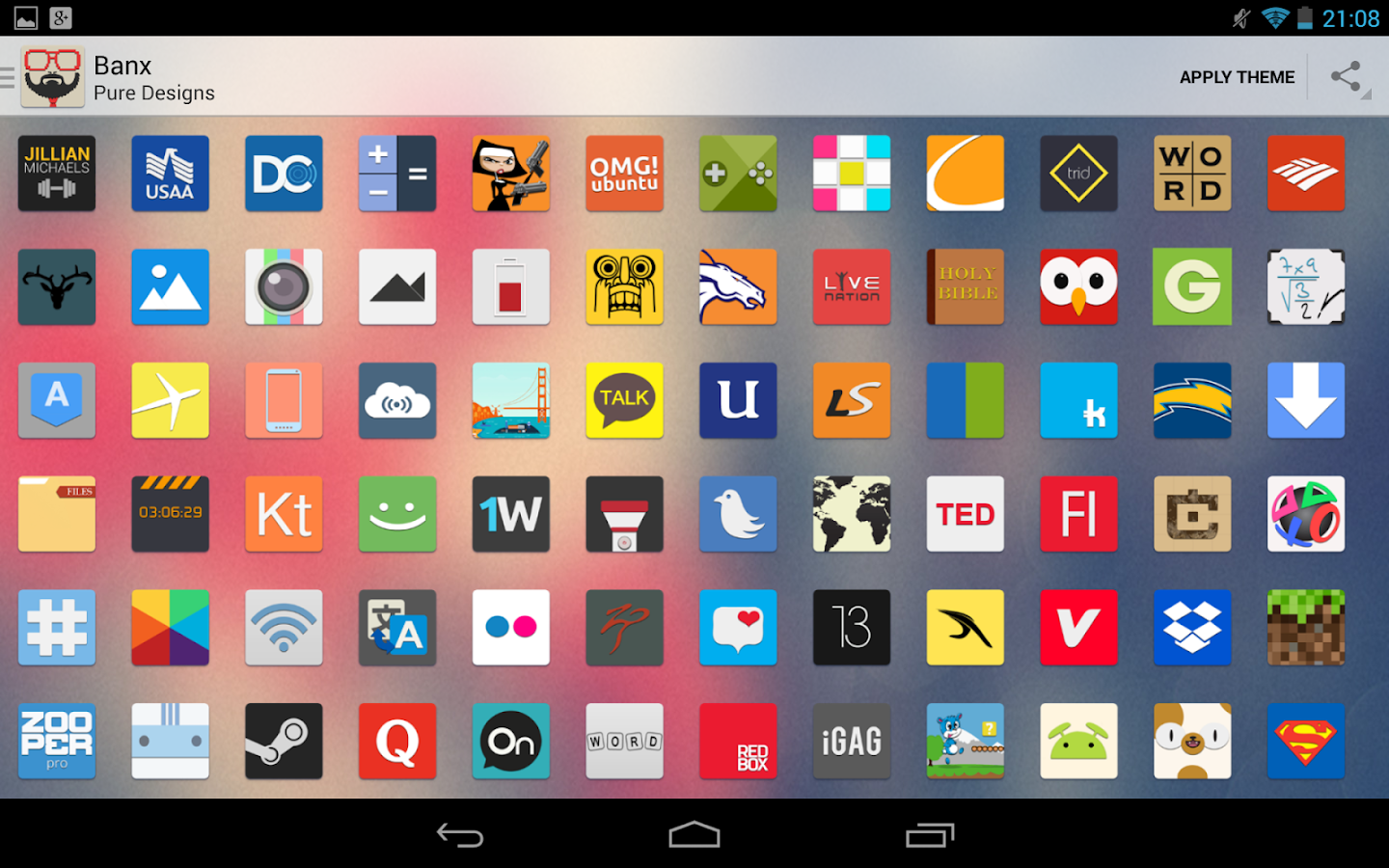 This is an icon pack that works with all major launchers that support icon themeing like: Go, Apex, Nova, Adw, Holo, Action, etc. Morena is designed to look crisp and clear with every wallpaper and any screen with nice rich colors. (Screenshot)