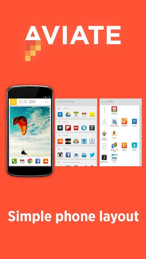 Based on a complex understanding of your context and preferences, Aviate works to deliver you only the best apps and information, when you need them most. Aviate is intelligent, and can learn how to best organize your apps.