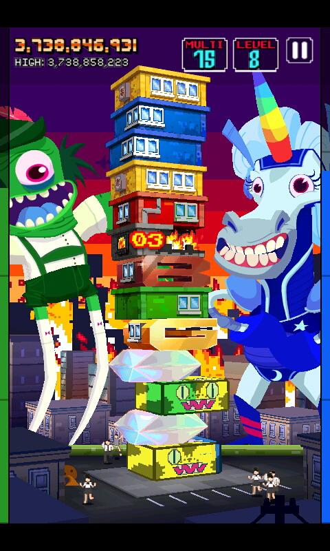 Adult Swim Games and PikPok present all-new monster puzzle action!! Terrible catastrophe! Four ferocious monsters of destruction are on a rampage and only residential high-rises will satisfy their boundless hunger. In this larger-than-life puzzle game, you will use intuitive swipe controls to match the colored floors. Feed the creatures and prevent the destruction of all humankind!