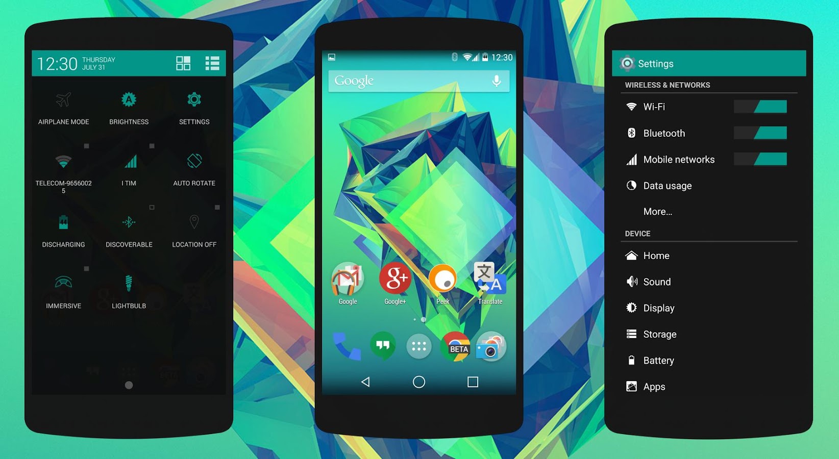 Objects Themes Family egives you the opportunity to change your main Android color with your favorite holo one and change all default blue paintings with theme's color, all over the main interface, settings app, dialogs etc. All apps using system resources will use themed ones. Also it brings a slick flat look to the main backgrounds and a polish touch to quick settings, removing single tile's flat background. Dialogs texts also, match the current text color now.